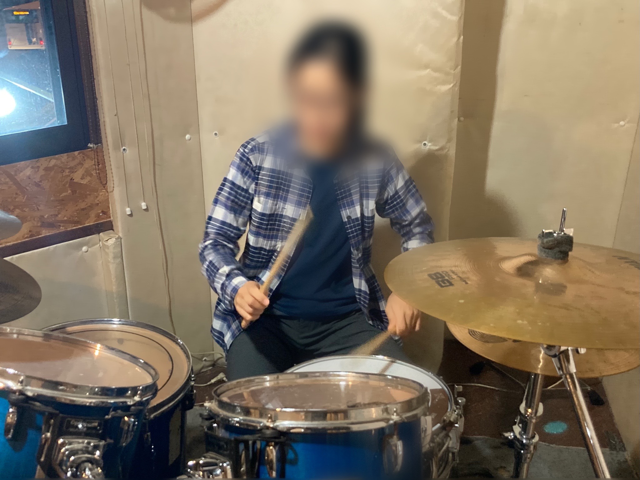 で、生ドラムで再現してみると、いい感じに音源っぽくなったので、早速Yさんにレクチャー。ちょっと難しいかな、、?
