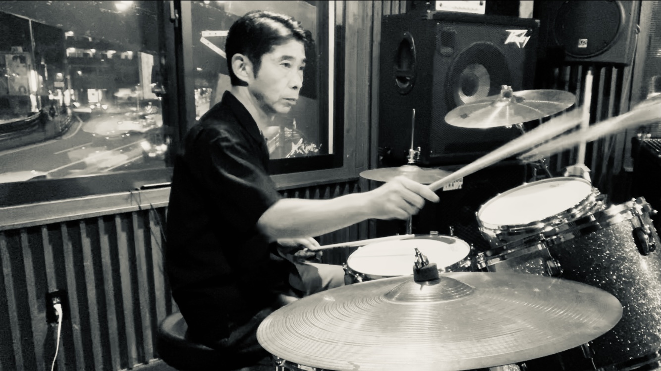 14歳でドラムを始める。中学3年の文化祭で兄のバンドで初めて人前で演奏する。